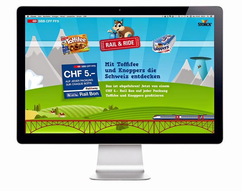 Abgefahren! Auf jeder Knoppers- und Toffifee-Packung gibts ab sofort einen CHF 5.– Rail Bon von RailAway. Wer es lieber sportlich mag, nimmt unter auf der Promo-Site am grossen Wettbewerb um 10 Thömus Cross Country Bikes und 20 Hudora Big Wheels teil.