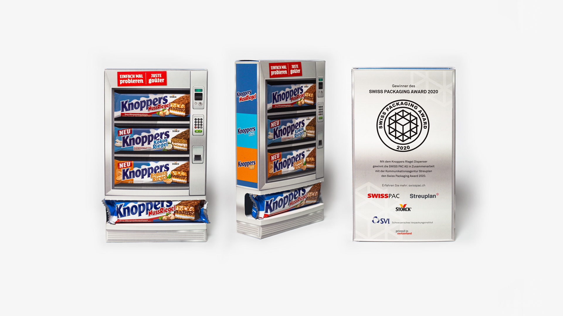 Dieses Mal erhielt unser Knoppers NussRiegel Sampling-Dispenser den «Swiss Packaging Award 2020» in der Kategorie «Marketing». Vielen Dank an das Schweizerische Verpackungsinstitut (SVI) für die Auszeichnung.