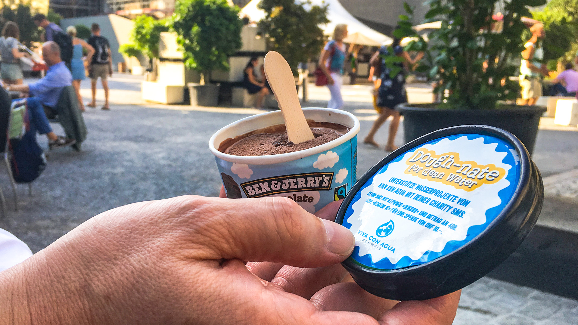 Ben & Jerry’s spendet zudem für jeden verkauften Shorty CHF 1.- an Viva con Agua. Die perfekte Kombination: Glacé geniessen und dabei auch noch Gutes tun.