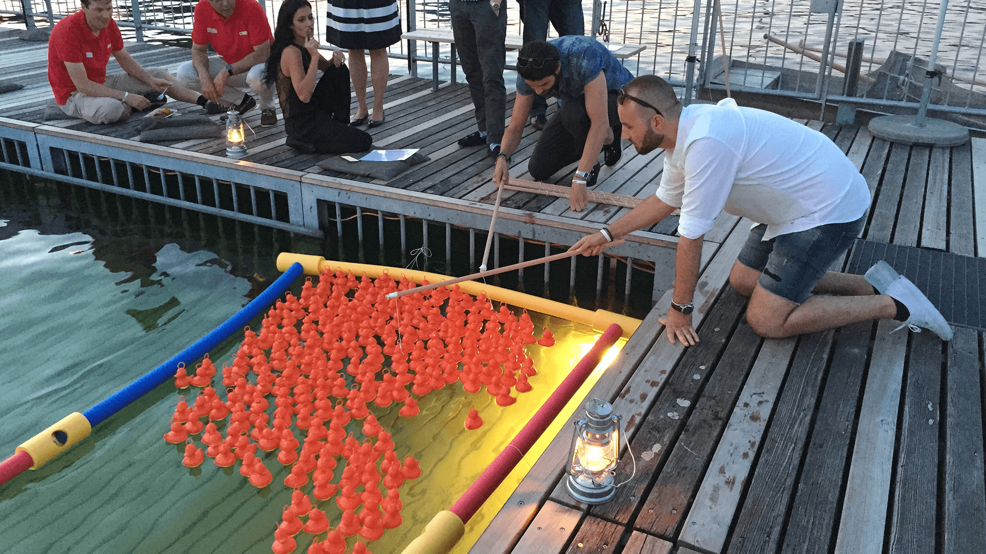 Jeder Mitspieler kommt an die Reihe und versucht möglichst viele Enten zu fangen.