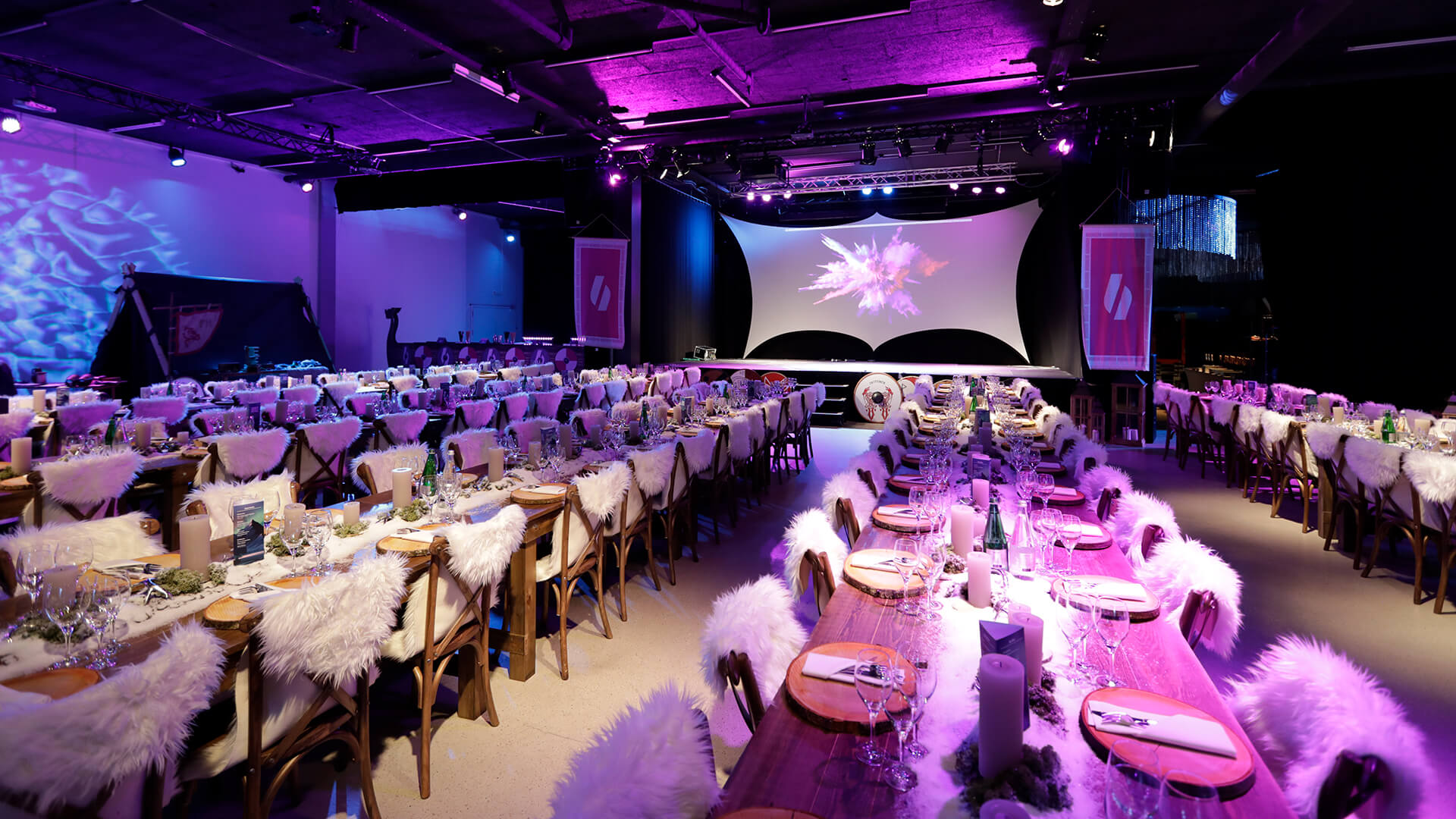 Wir meisterten die Herausforderung, trotz vielen barbarischen Elementen einen edlen Galaabend umzusetzen. Mit dem Einsatz von reichlich Kunstschnee strahlte die Location eine skandinavisch-winterliche Atmosphäre aus, bei der mit einem Becher Met auf ein neues, erfolgreiches Jahr angestossen wurde. Auch kulinarisch begaben sich die rund 175 BETTERHOMES-Mitarbeitenden auf eine Reise nach Skandinavien: Highlights des reichhaltigen Buffets waren der Flammlachs und das Spanferkel.