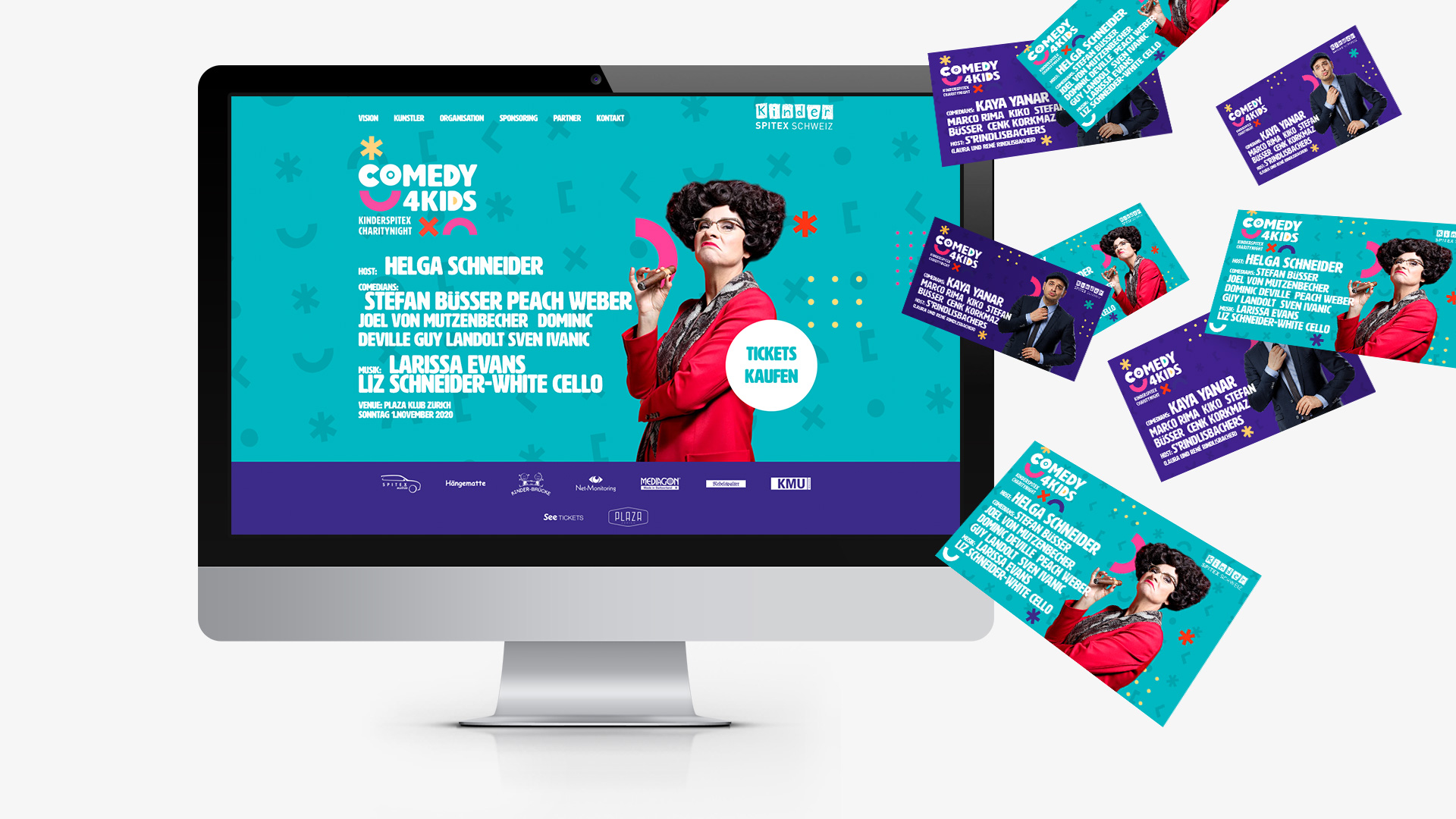 Wir unterstützen den Schweizerischen Kinderspitex Verein als Marketingpartner bei der Lancierung der Eventreihe «Comedy4Kids». Dies beinhaltet die Konzeption und Gestaltung des gesamten Auftritts.