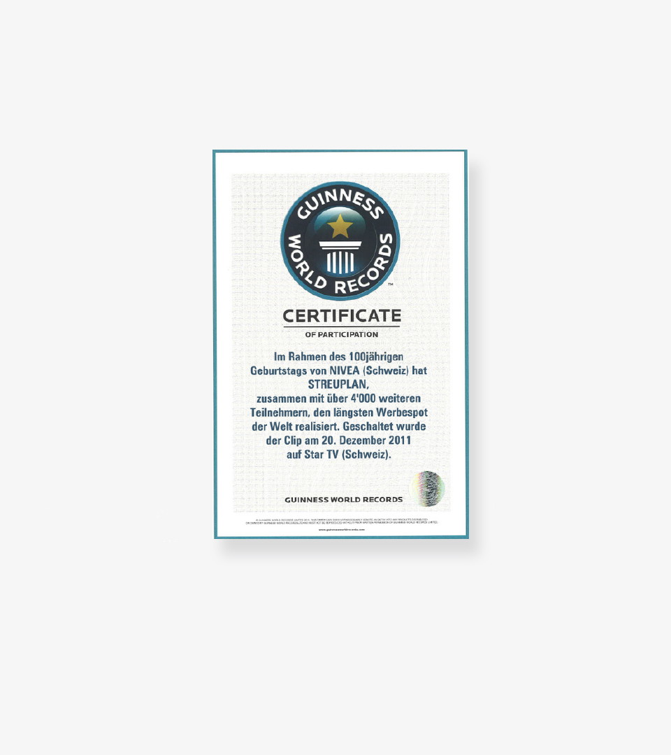 Mit einer Spotlänge von 60 Minuten übertrafen wir den bisherige Rekordhalter aus Japan um das Doppelte und sicherten uns damit den offiziellen Guinness Weltrekord.