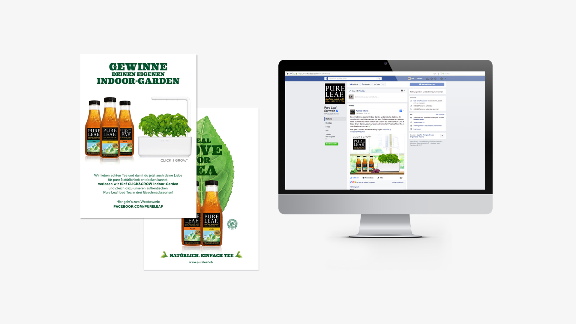 Zum Launch von Pure Leaf Iced Tea auf dem Schweizer Markt wurden wir mit der Ausführung der Gesamtkampagne beauftragt. Ziel war es, dem neuen Pure Leaf Iced Tea in der Zielgruppe glaubwürdige Awarness zu verschaffen, das Wissen über die «natürlichen» Vorteile zu verstärken und Trials zu generieren. Diese Zielsetzungen haben wir mit fein abgestimmten Massnahmen wie Plakaten, Inseraten, Publireportagen, POS Marketing, Social Media-Wettbewerben, Influencer-Marketing, Samplings und Foodfestival-Kooperationen erreicht.