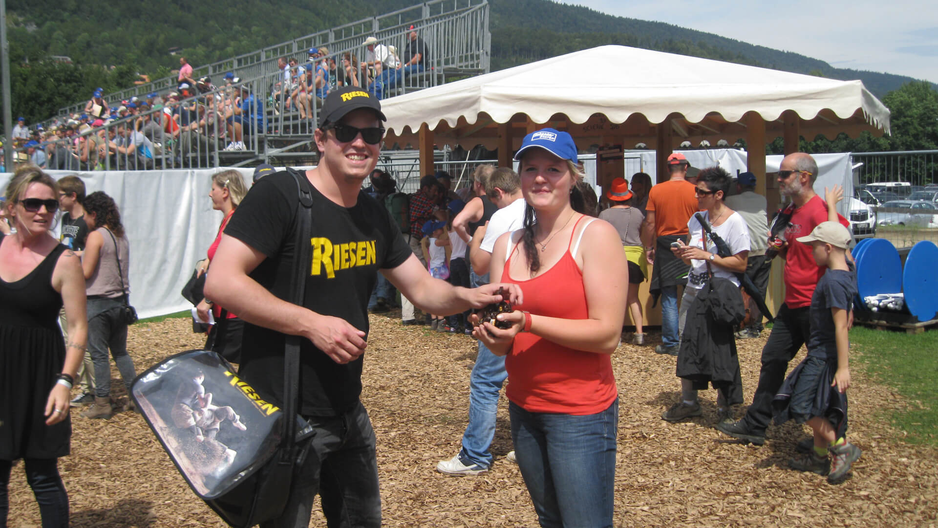 Die Kampagne wurde zudem am POS mit Schüttdisplays und über Inserate in diversen Festführern kommuniziert. Zusätzlich besuchten unsere Promotorinnen kleine und grosse Schwingfeste des Landes und verteilten eine Riesen-Stärkung an die Besucher.